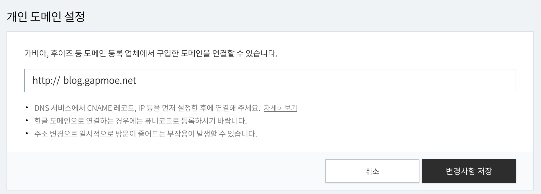 티스토리에 개인 도메인 주소 연결하기 본문