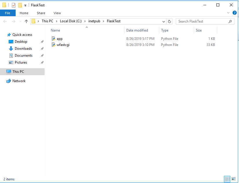 C:\inetpub 하위 디렉토리를 하나 생성하여 위에 준비했던 app.py